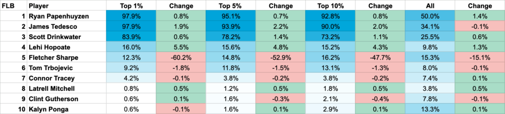 In his 4 starts at fullback this season (non-HIA impacted), he has scored 107, 87, 46 and 78.