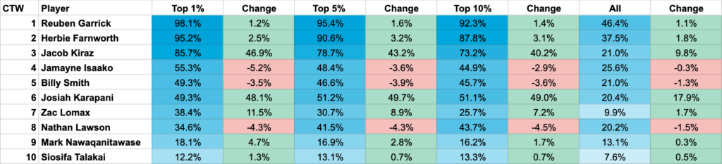 As a result, most Supercoaches have downgraded to Josiah Karapani or gone straight across to gun CTW Jacob Kiraz.
