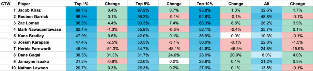 To make life easier when identifying true ownership of NRL Supercoach players, each week we’ll break it down into ranking brackets.
