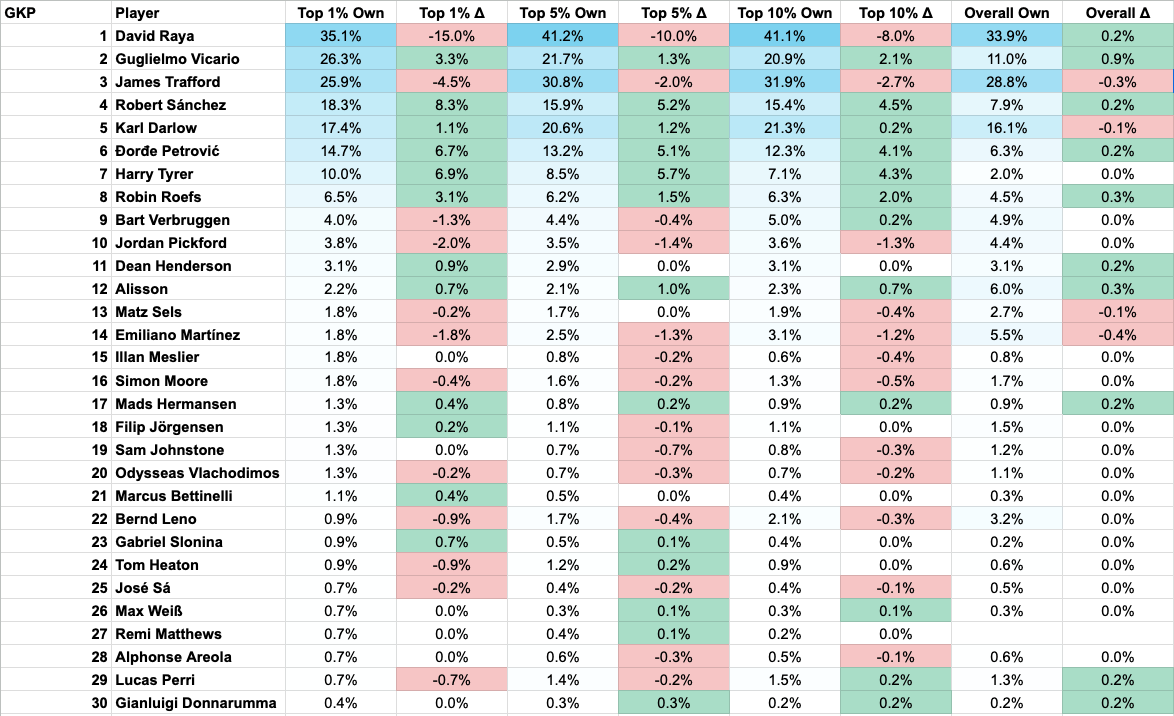 Embed from Getty ImagesNot any major movements in the GKP position this week.