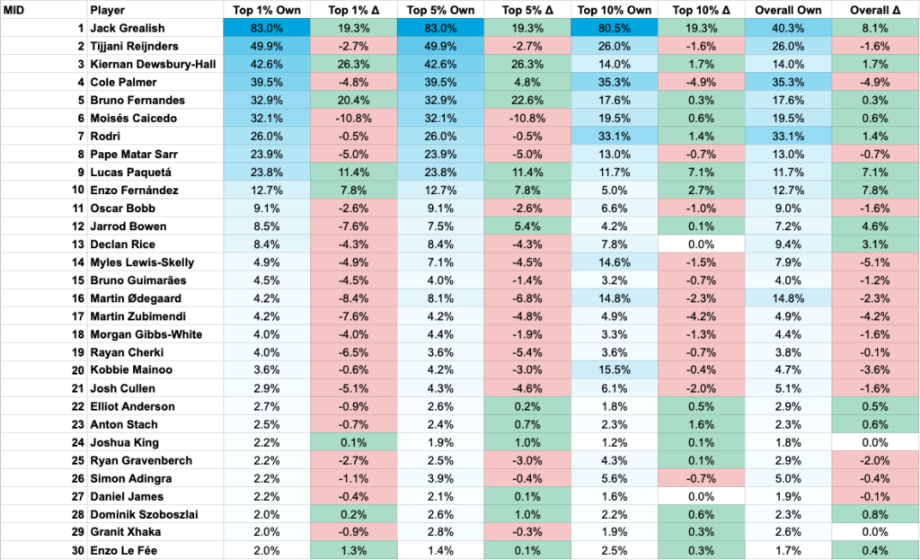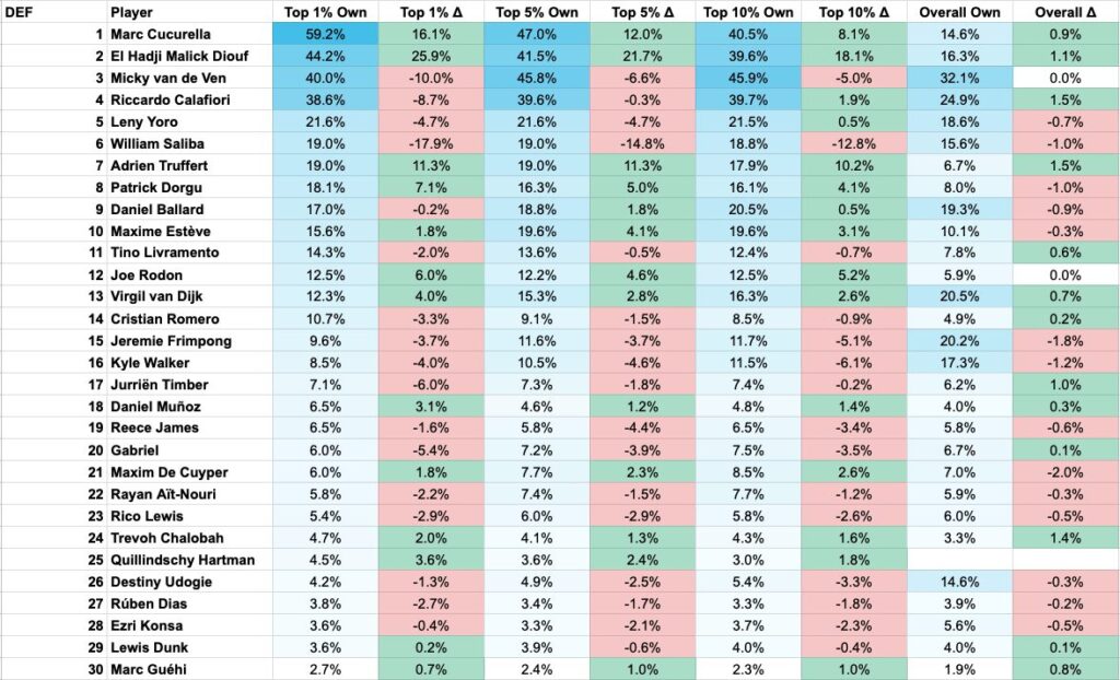 Let’s take a look at the ownership of players heading into Matchday 4.
