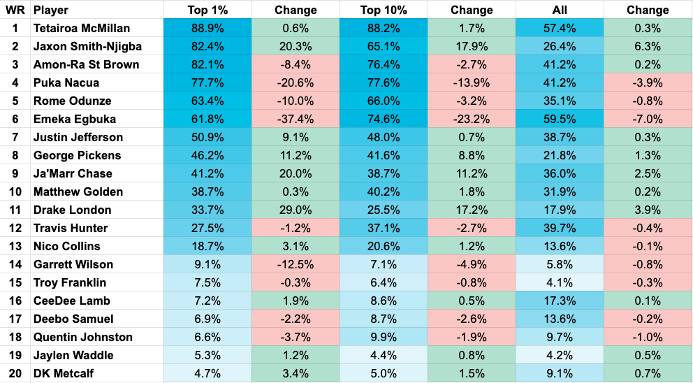 Double blow this week for the 1st and 3rd most owned wide receivers, Emeka Egbuka and Puka Nacua.