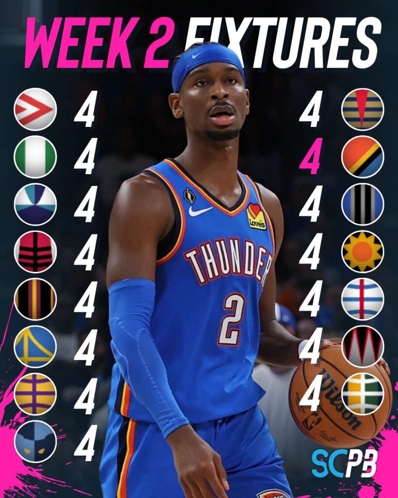 Week 2 has half the competition playing 4 fixtures, including Shai Gilgeous-Alexander, Austin Reaves and Stephen Curry.