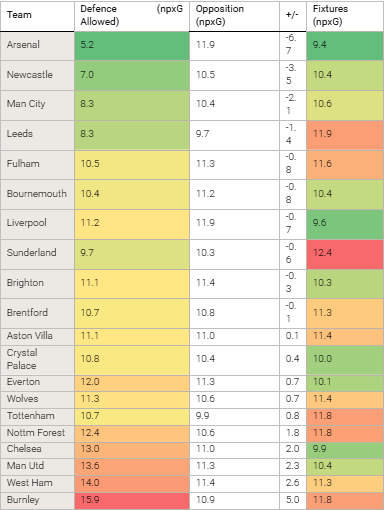 Next six fixtures average 12.2 npxG Allowed.