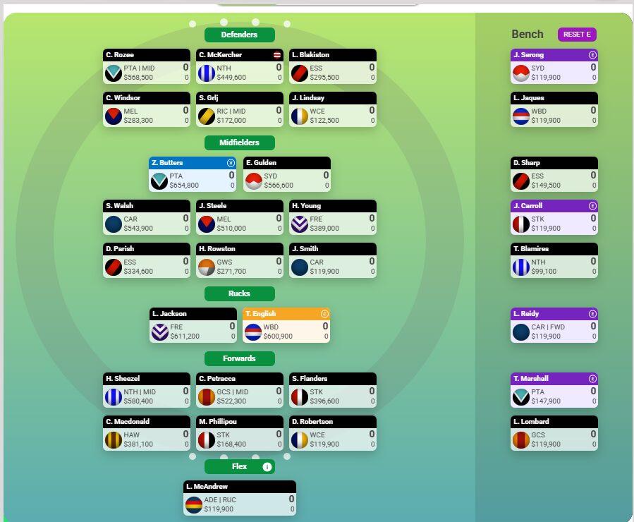 Blakiston ($295.5k) alongside him is a solo ruck play – just needs to hold the role long enough to build cash.